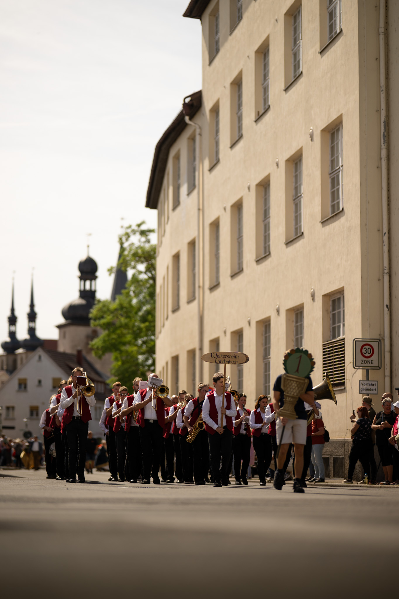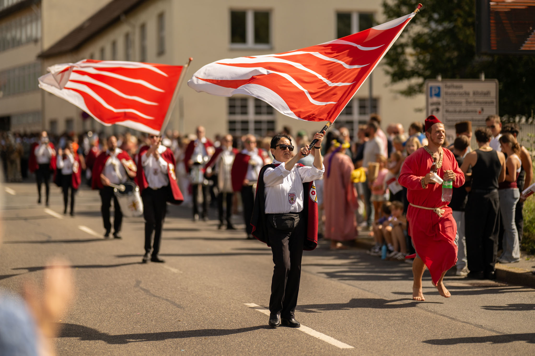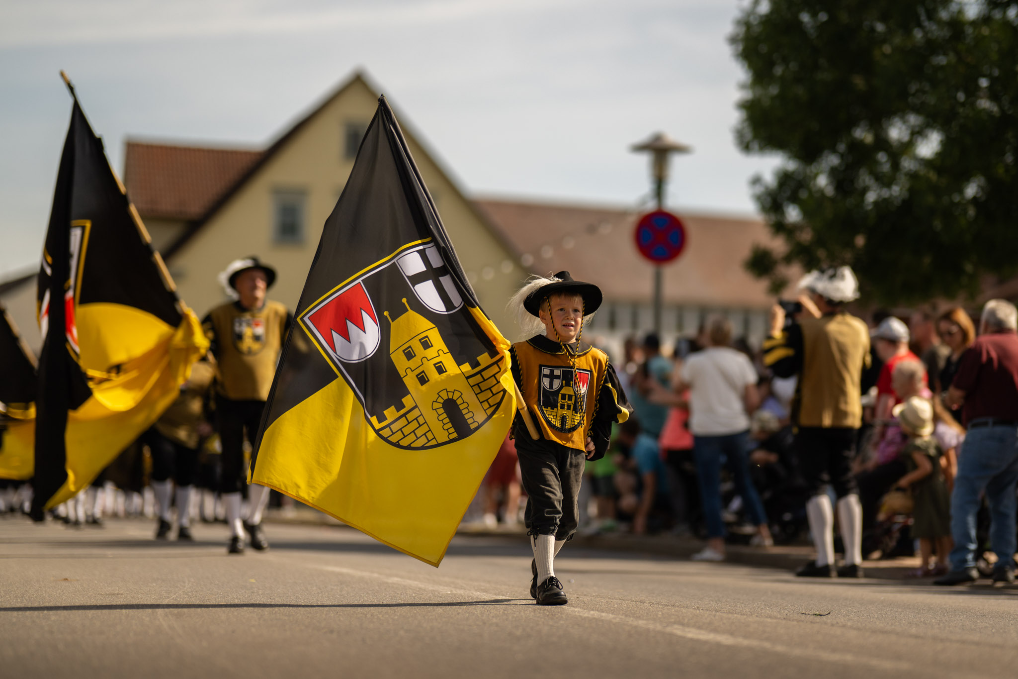 Das Wetter hätte kaum besser sein können: Unter einem strahlend blauen Himmel und bei angenehm warmen Temperaturen versammelten sich hunderte Besucherinnen und Besucher in der Innenstadt von Weikersheim. Schon vor Beginn des Umzugs war die Atmosphäre voller Vorfreude – Kinder hielten gespannt ihre Fahnen und Wimpel bereit, während Erwachsene die besten Plätze entlang der Strecke suchten, um den perfekten Blick auf die vorbeiziehenden Gruppen zu ergattern.