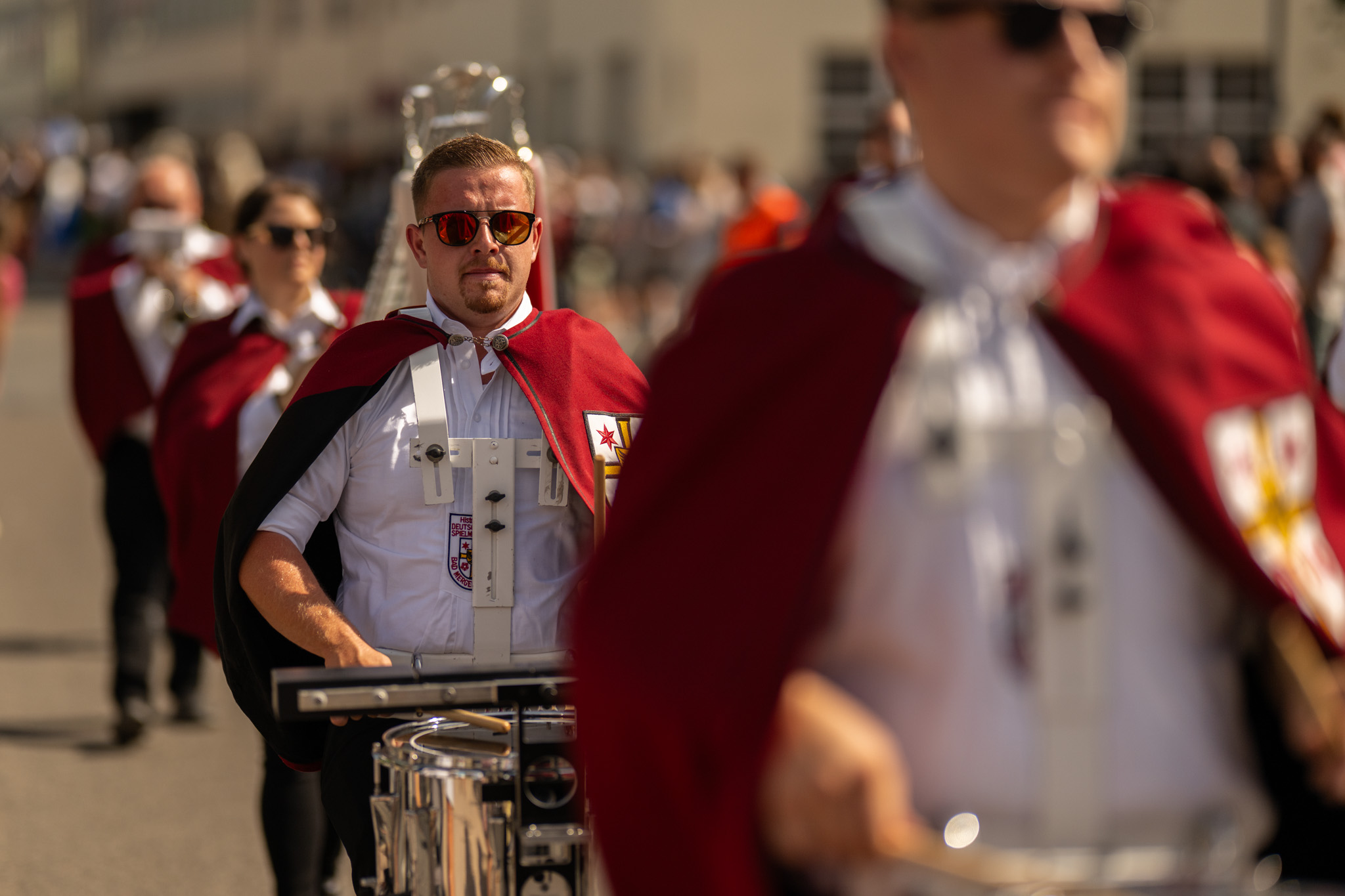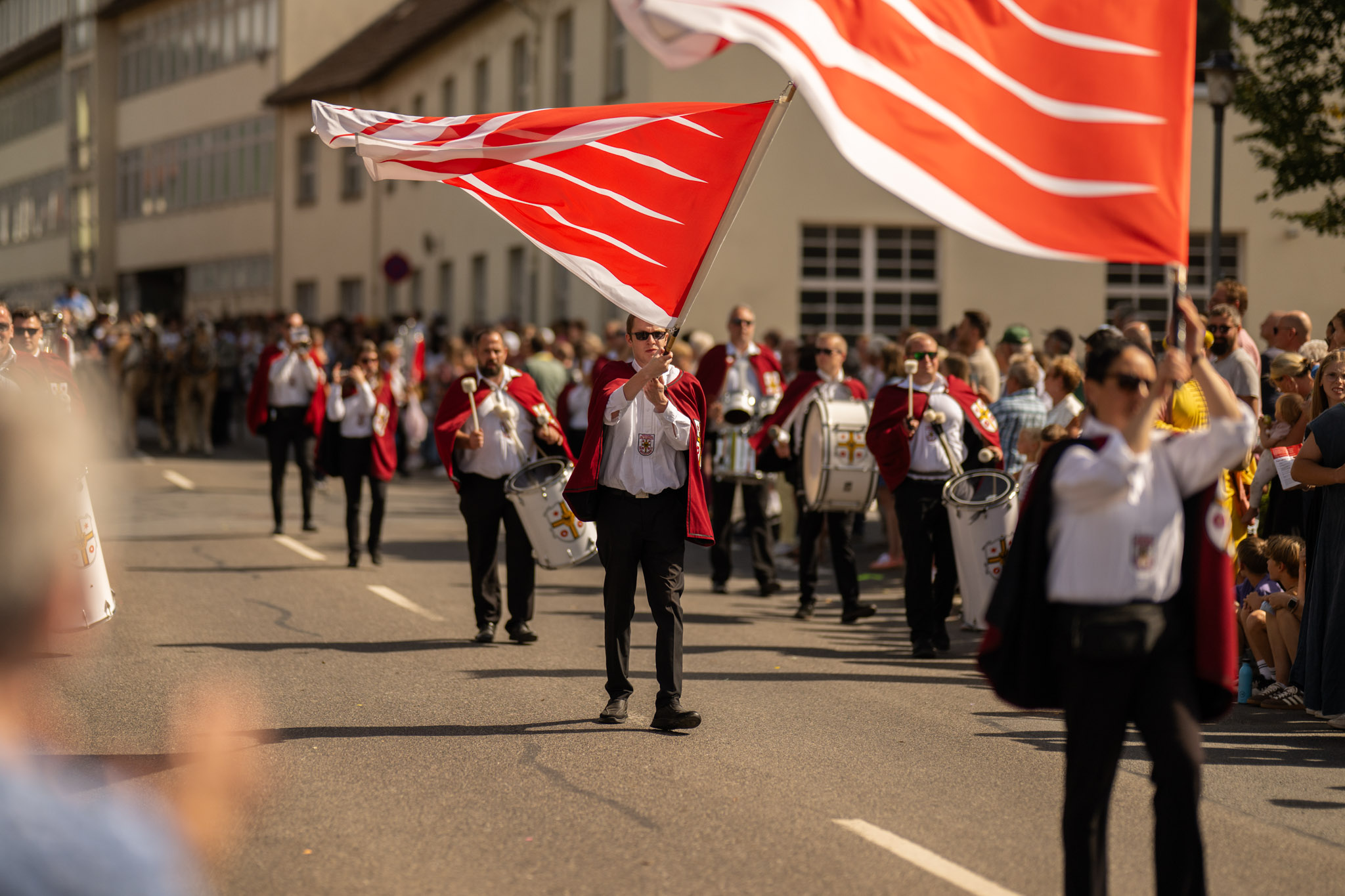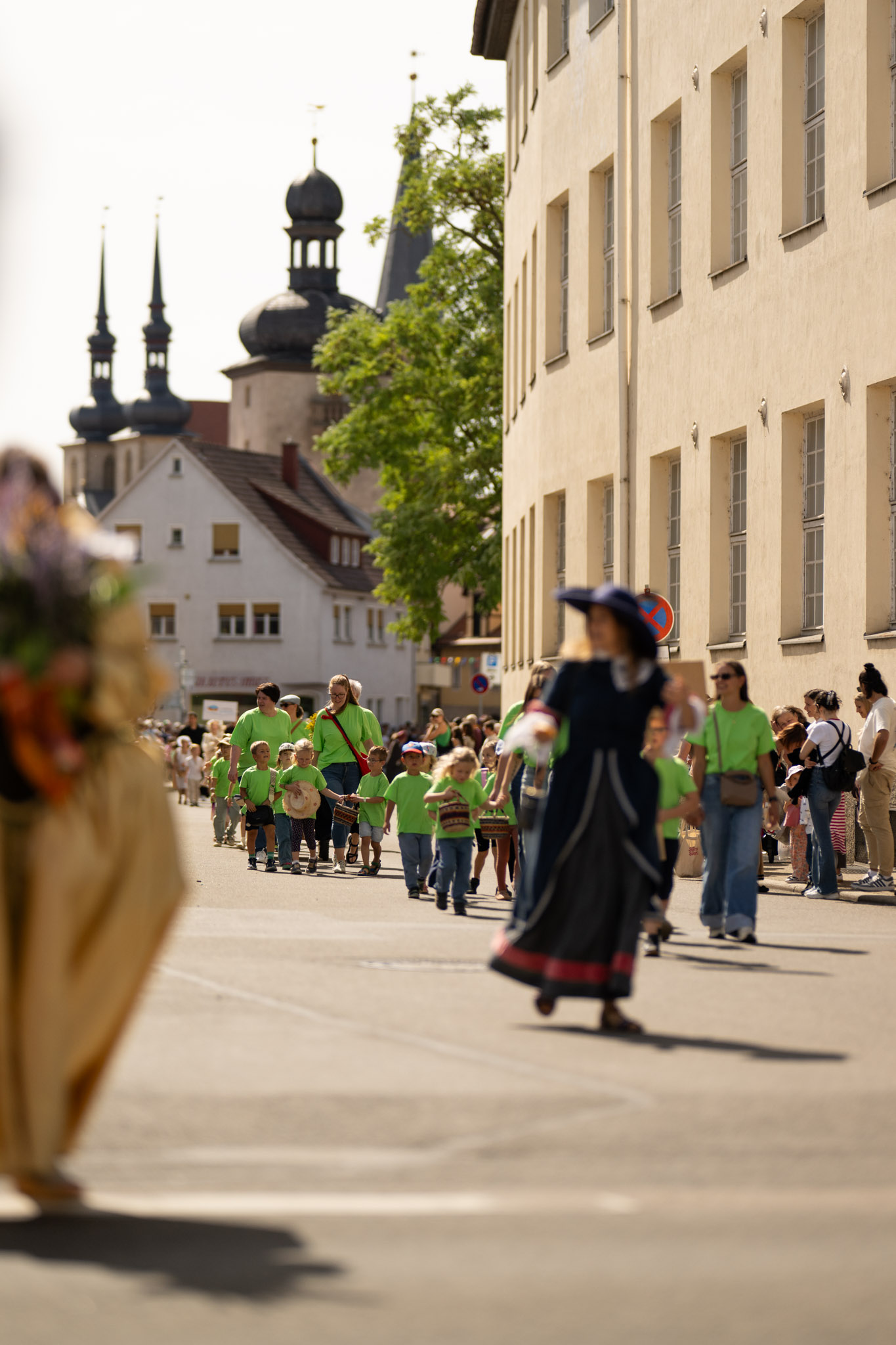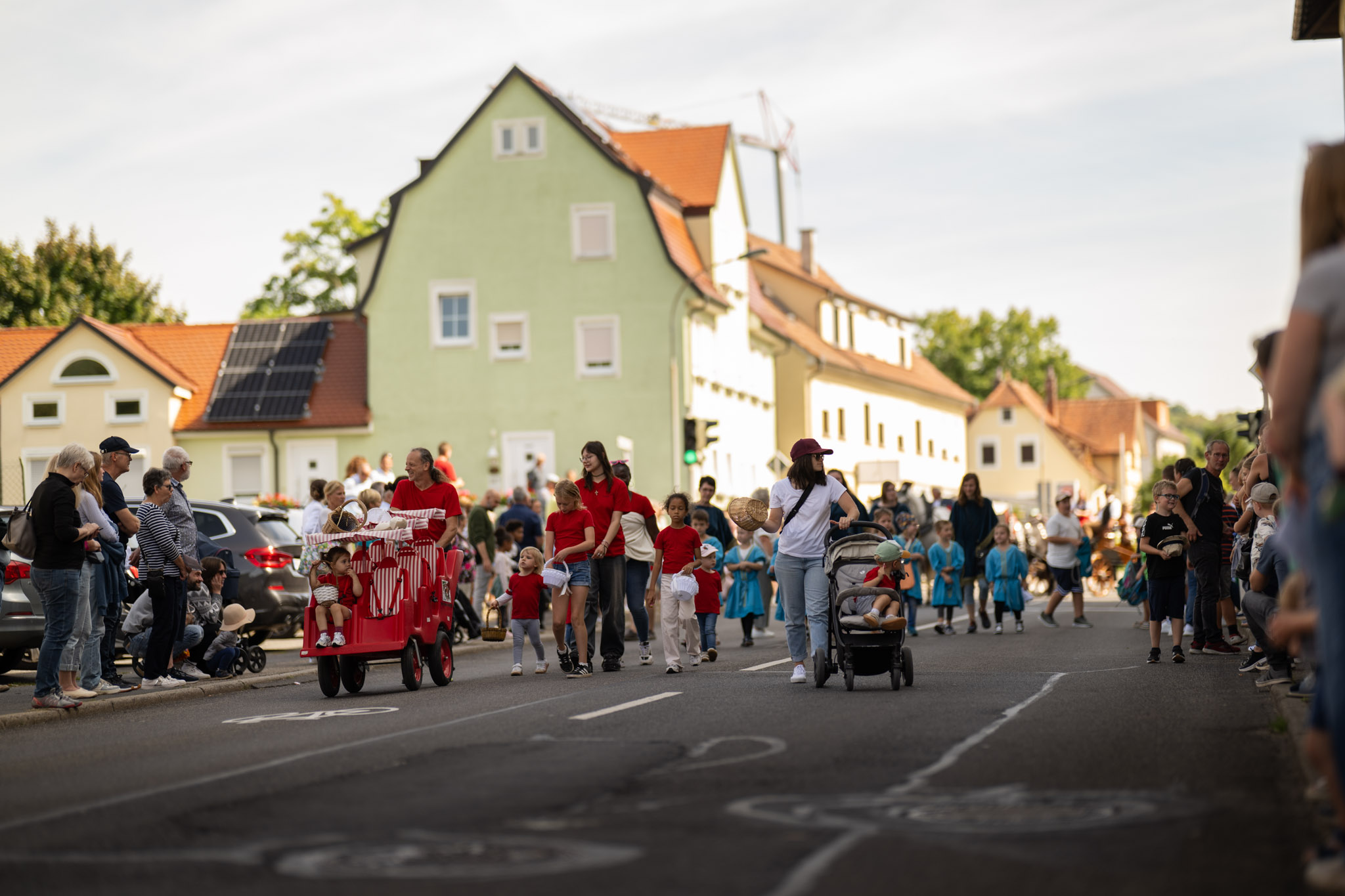 Das Wetter hätte kaum besser sein können: Unter einem strahlend blauen Himmel und bei angenehm warmen Temperaturen versammelten sich hunderte Besucherinnen und Besucher in der Innenstadt von Weikersheim. Schon vor Beginn des Umzugs war die Atmosphäre voller Vorfreude – Kinder hielten gespannt ihre Fahnen und Wimpel bereit, während Erwachsene die besten Plätze entlang der Strecke suchten, um den perfekten Blick auf die vorbeiziehenden Gruppen zu ergattern.