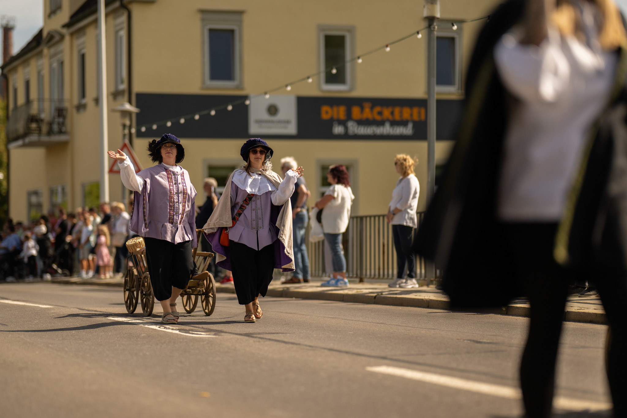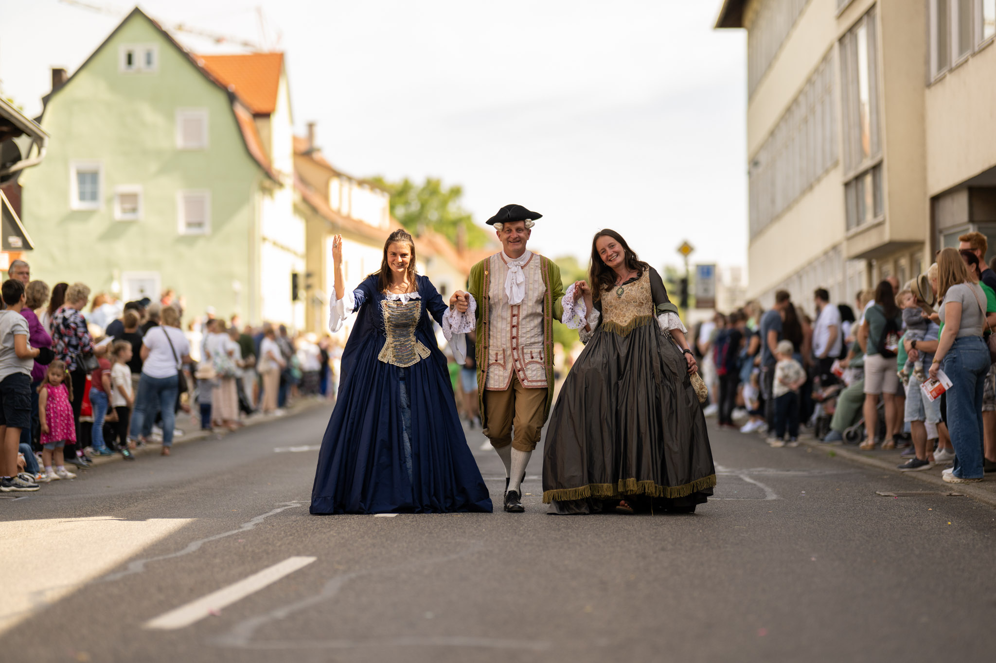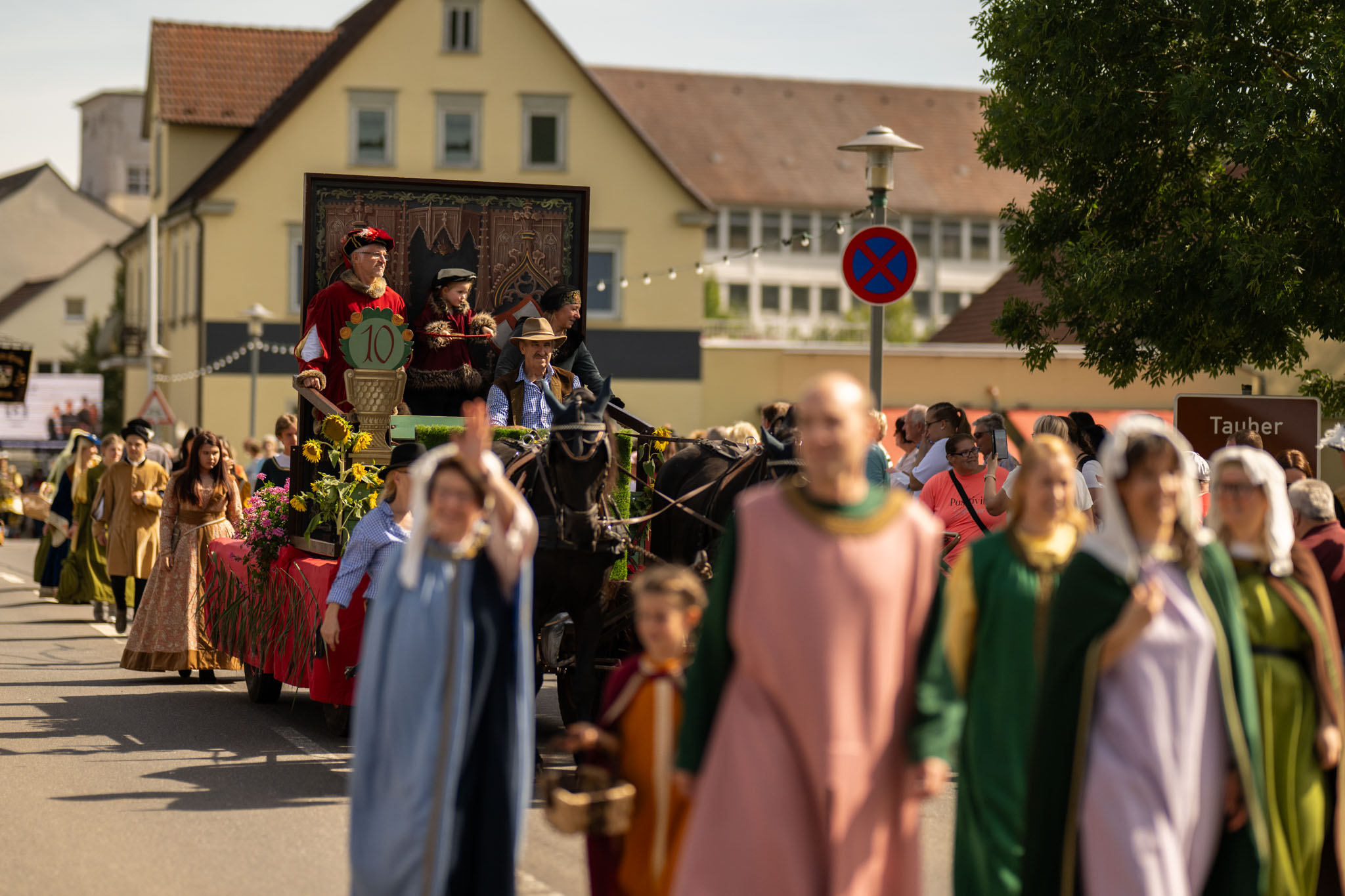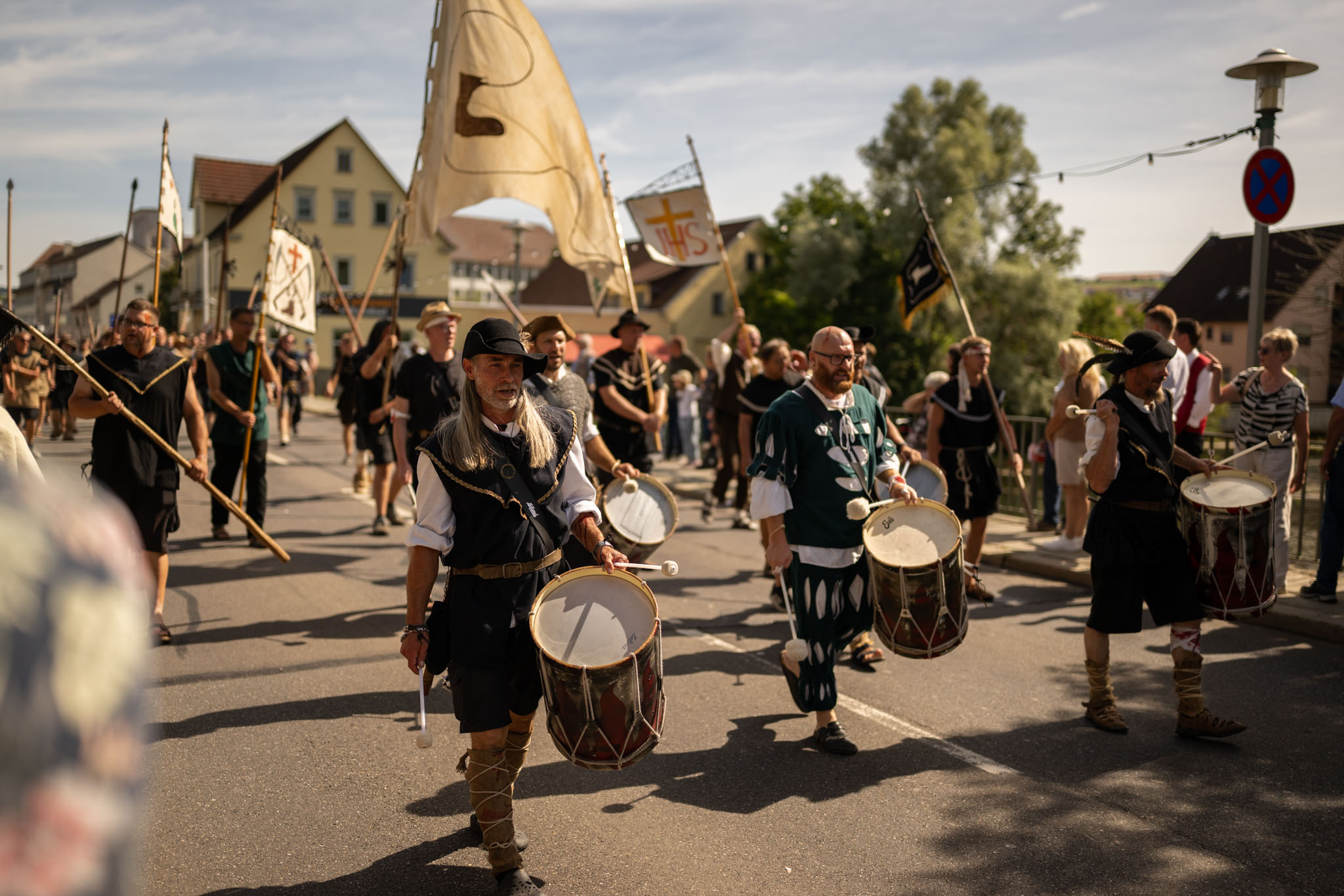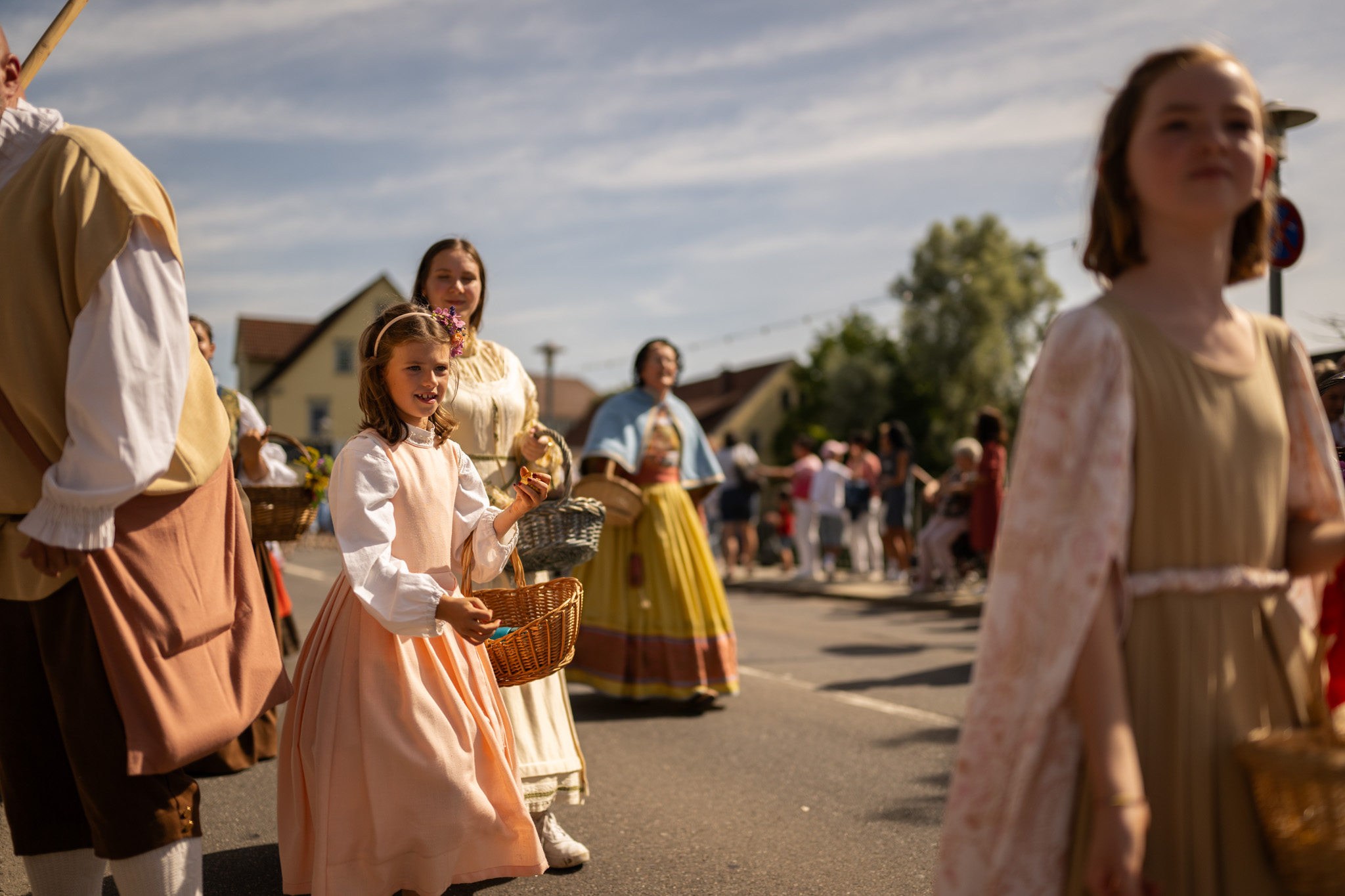 Unter dem Motto „500 Jahre Bauernkrieg“ standen dieses Jahr vor allem Szenen aus einer Epoche im Mittelpunkt, die die Region nachhaltig geprägt hat. Darsteller in historischen Kostümen erinnerten an die Ereignisse des 16. Jahrhunderts und machten die Vergangenheit greifbar. Neben diesen geschichtlichen Darstellungen brachten Musikkapellen, Trachtengruppen und Vereine fröhliche Töne und lebendige Bilder in die Straßen von Weikersheim.