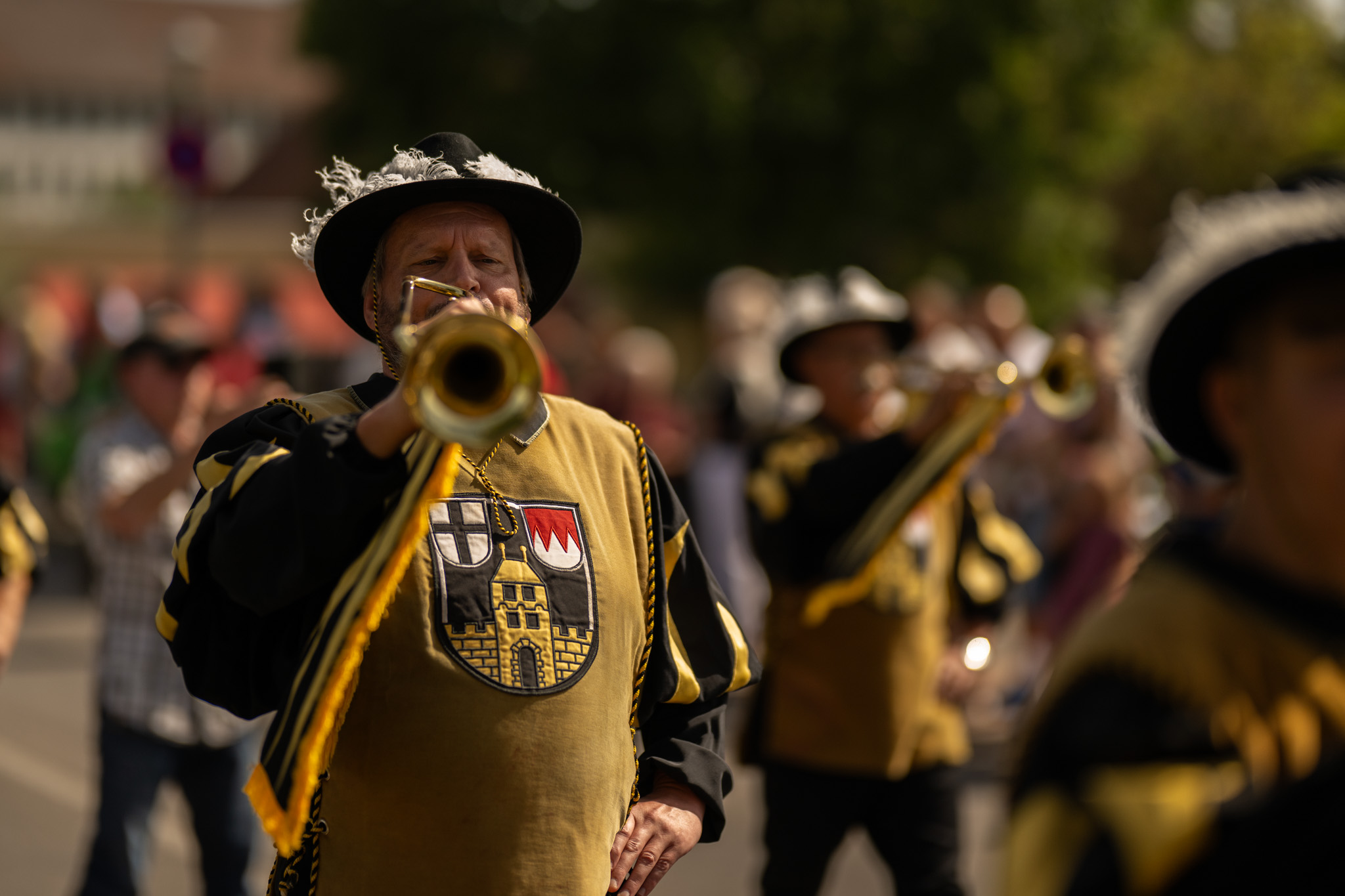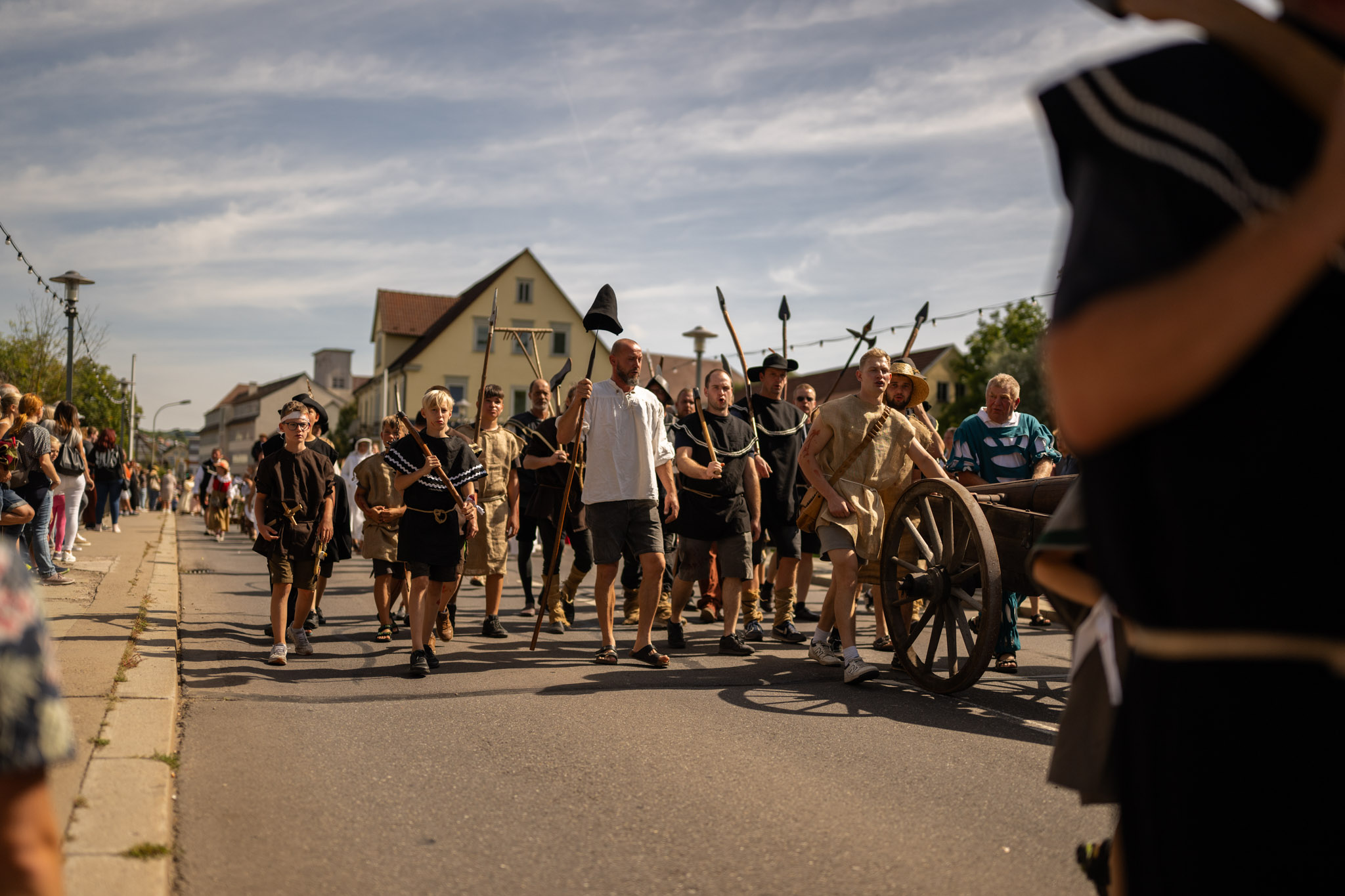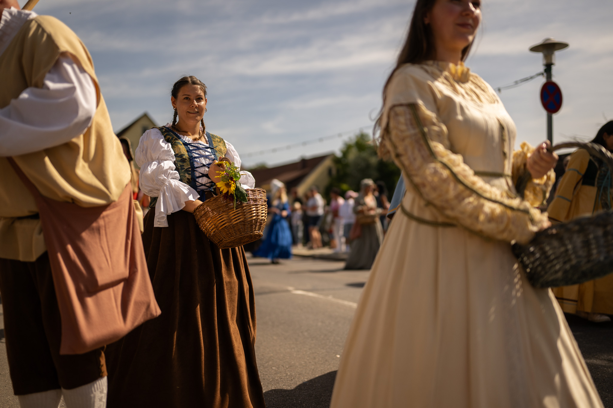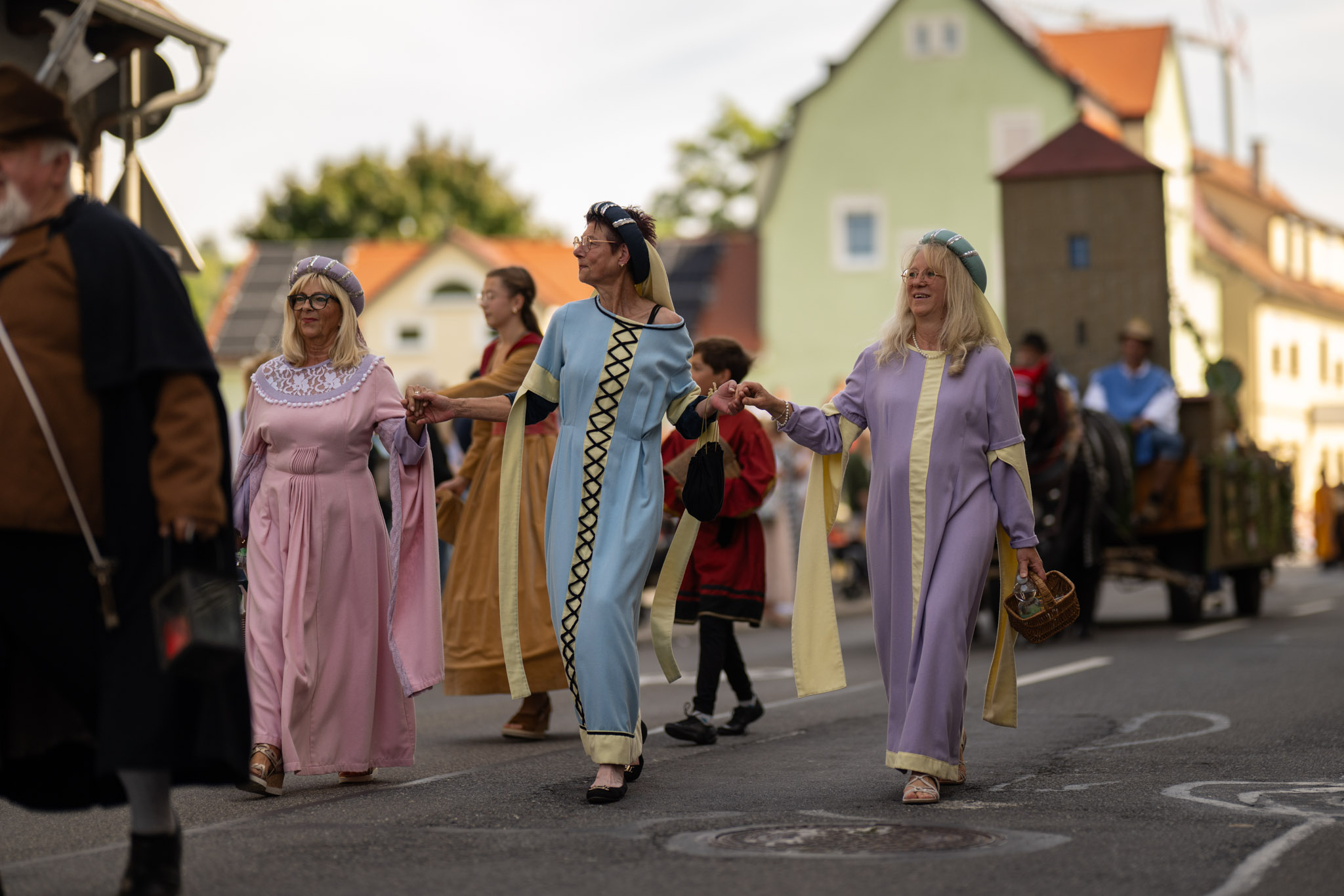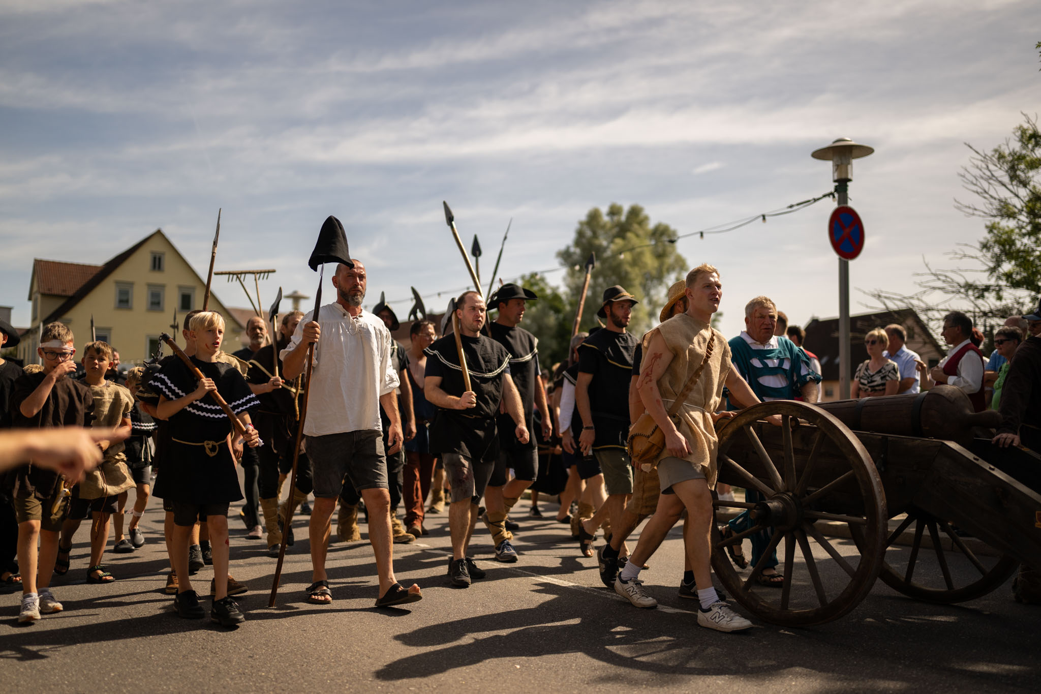 Unter dem Motto „500 Jahre Bauernkrieg“ standen dieses Jahr vor allem Szenen aus einer Epoche im Mittelpunkt, die die Region nachhaltig geprägt hat. Darsteller in historischen Kostümen erinnerten an die Ereignisse des 16. Jahrhunderts und machten die Vergangenheit greifbar. Neben diesen geschichtlichen Darstellungen brachten Musikkapellen, Trachtengruppen und Vereine fröhliche Töne und lebendige Bilder in die Straßen von Weikersheim.