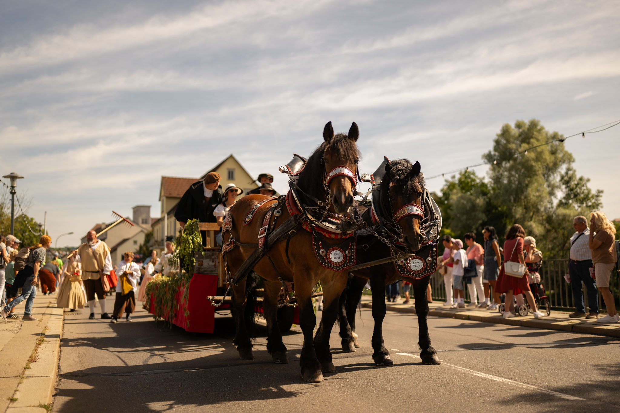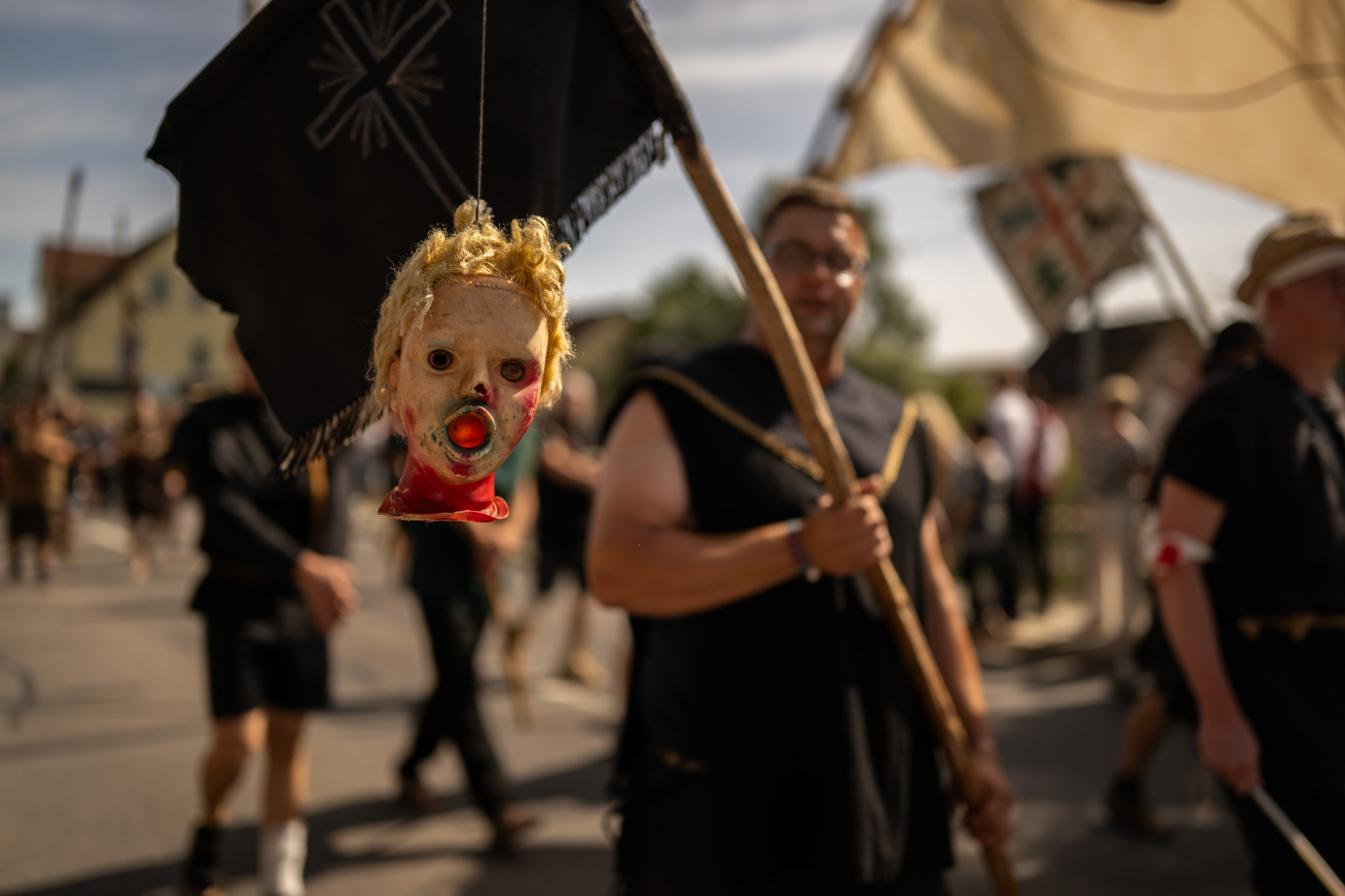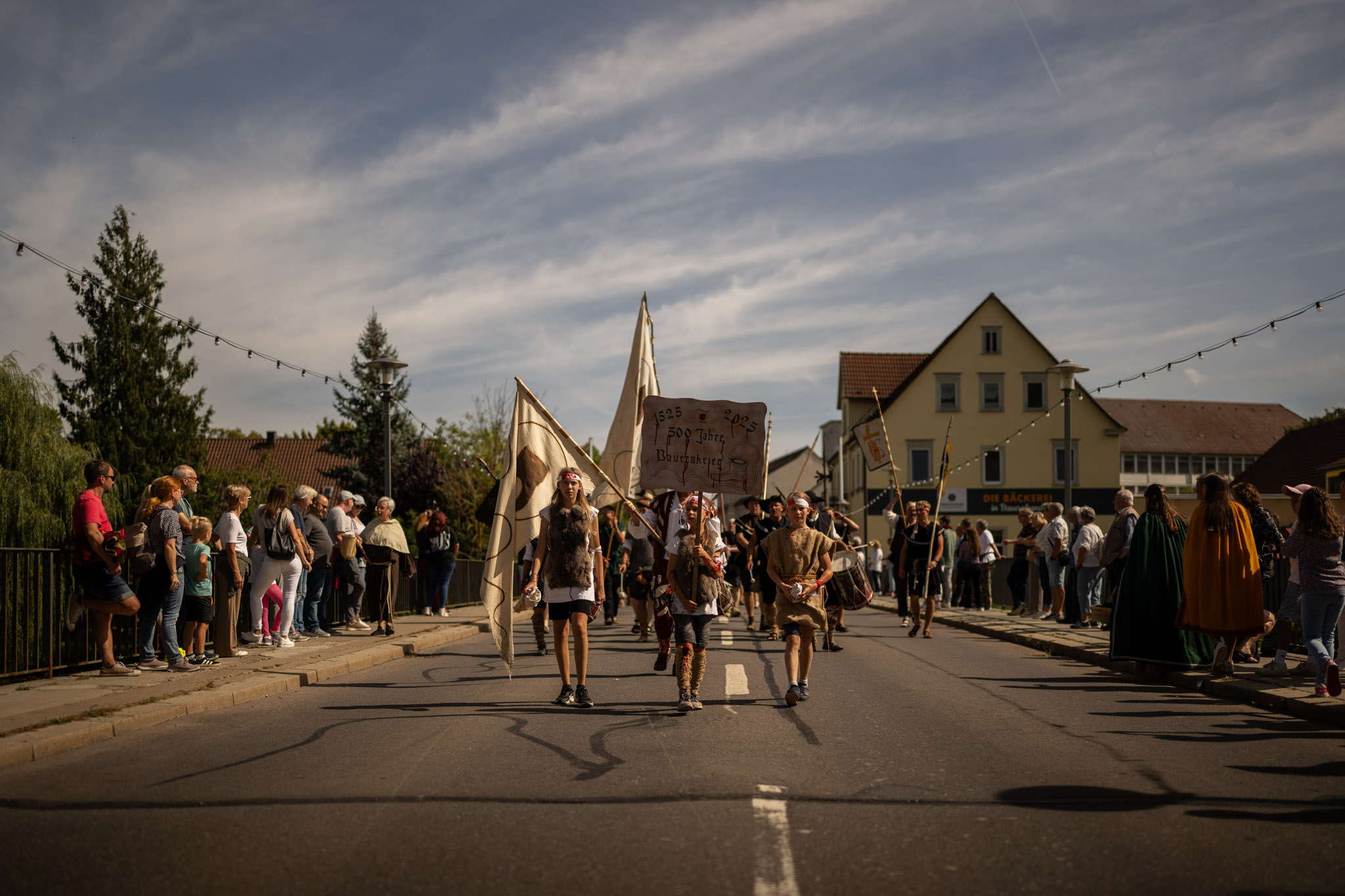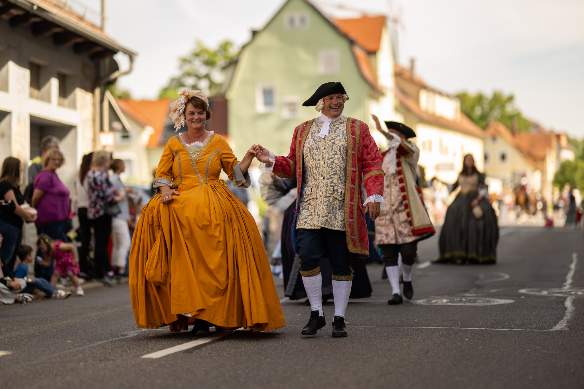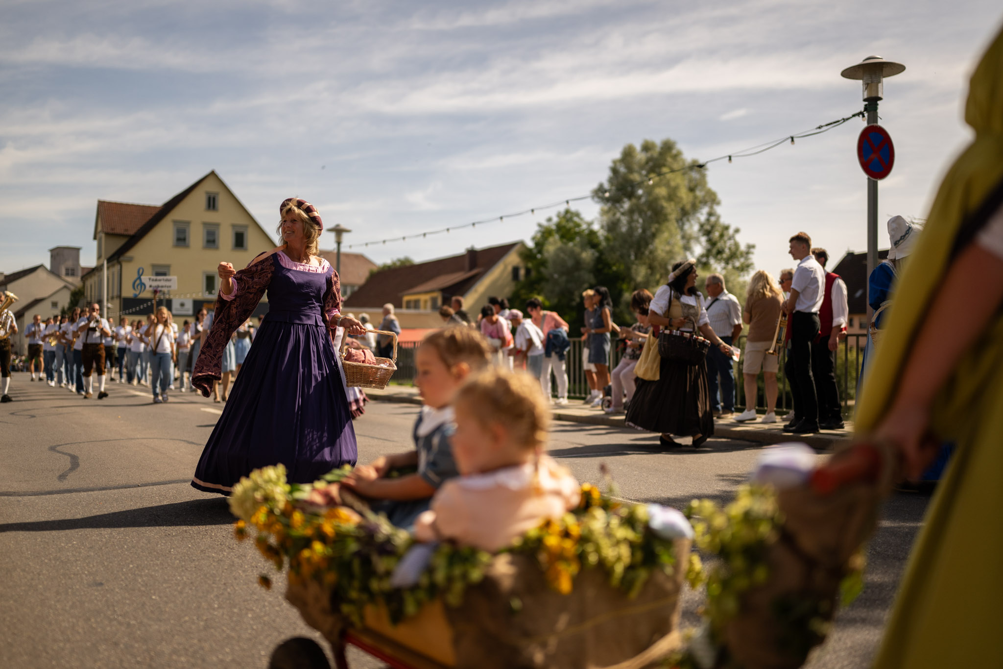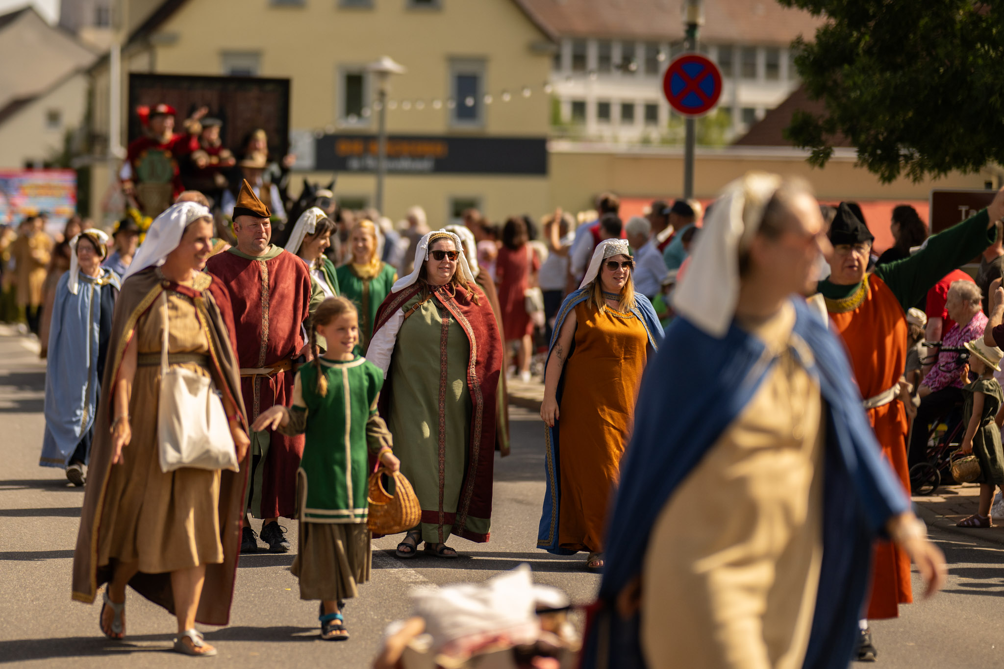 Unter dem Motto „500 Jahre Bauernkrieg“ standen dieses Jahr vor allem Szenen aus einer Epoche im Mittelpunkt, die die Region nachhaltig geprägt hat. Darsteller in historischen Kostümen erinnerten an die Ereignisse des 16. Jahrhunderts und machten die Vergangenheit greifbar. Neben diesen geschichtlichen Darstellungen brachten Musikkapellen, Trachtengruppen und Vereine fröhliche Töne und lebendige Bilder in die Straßen von Weikersheim.