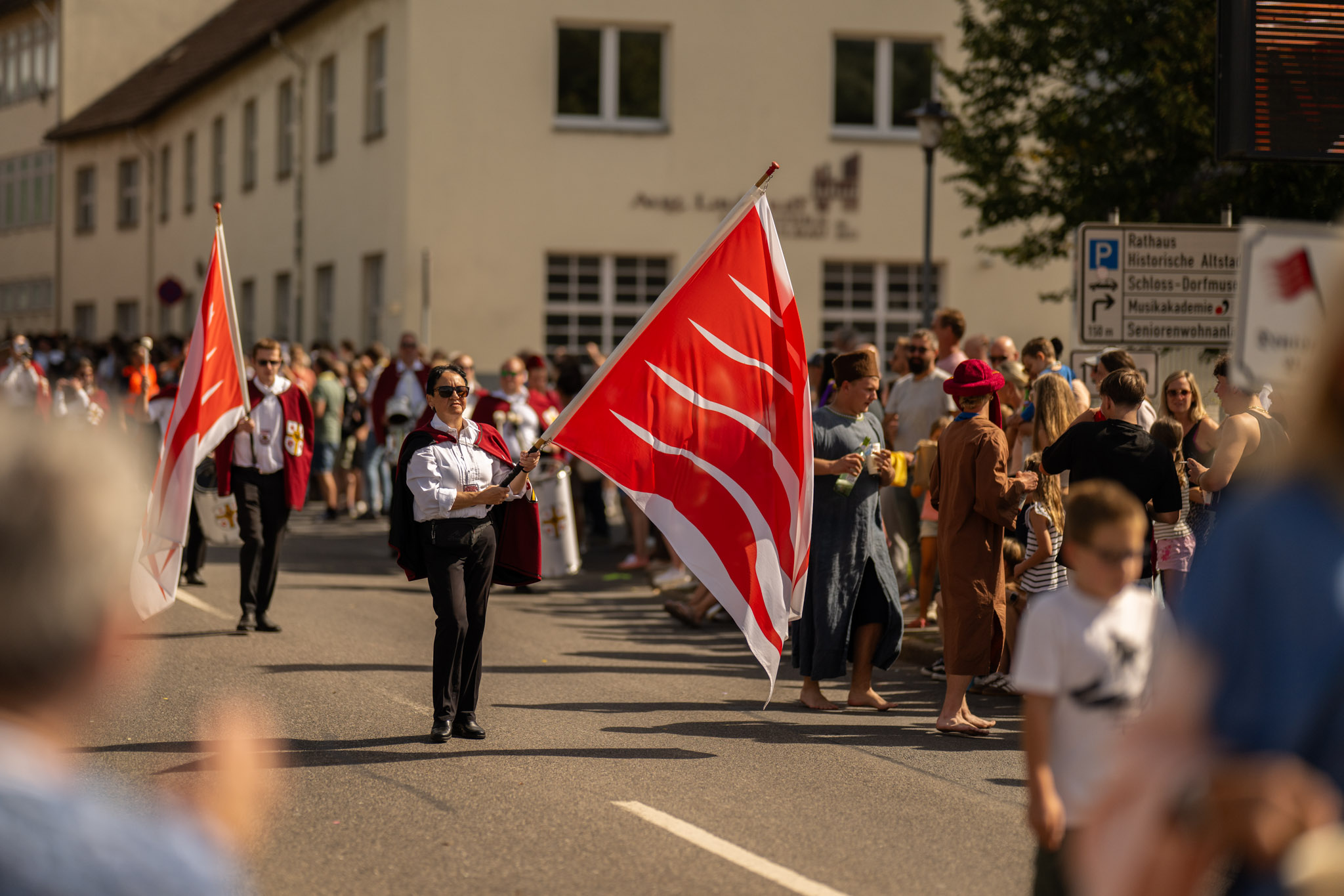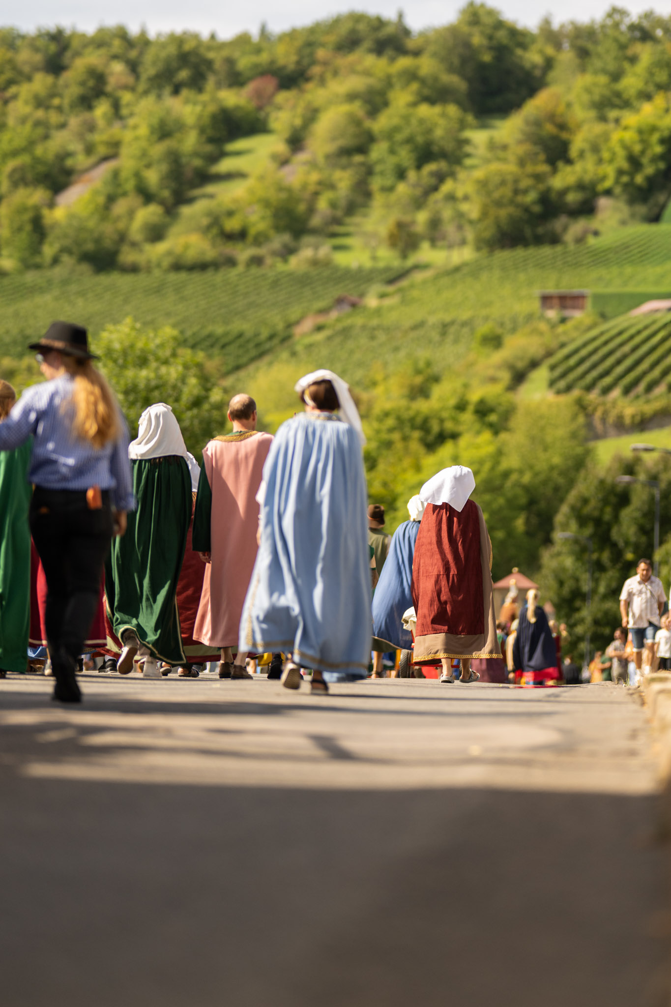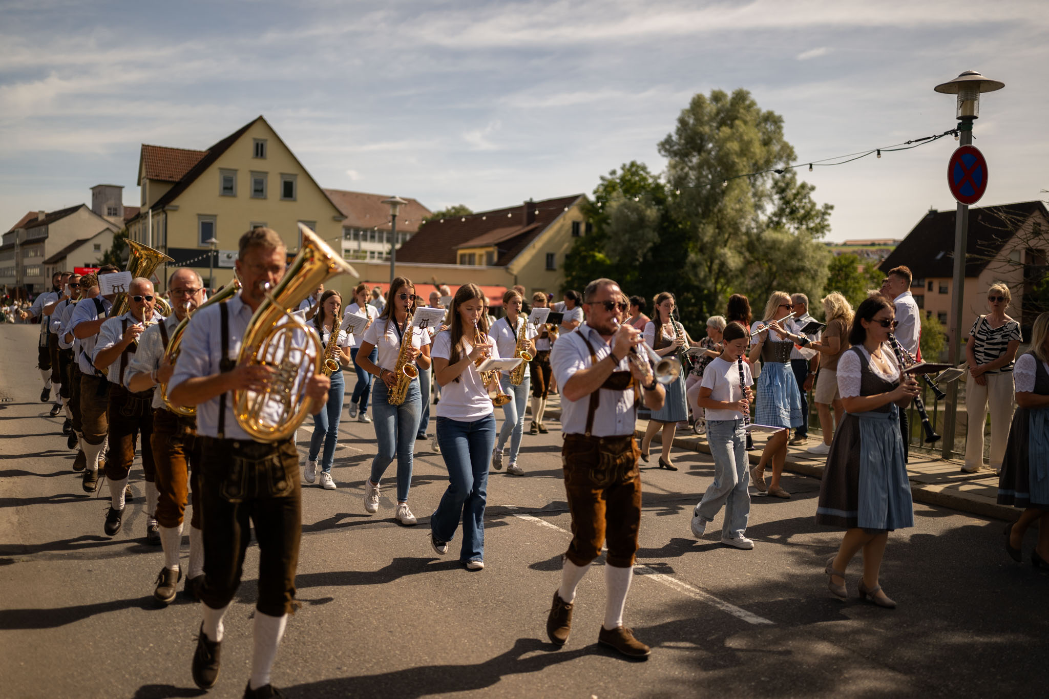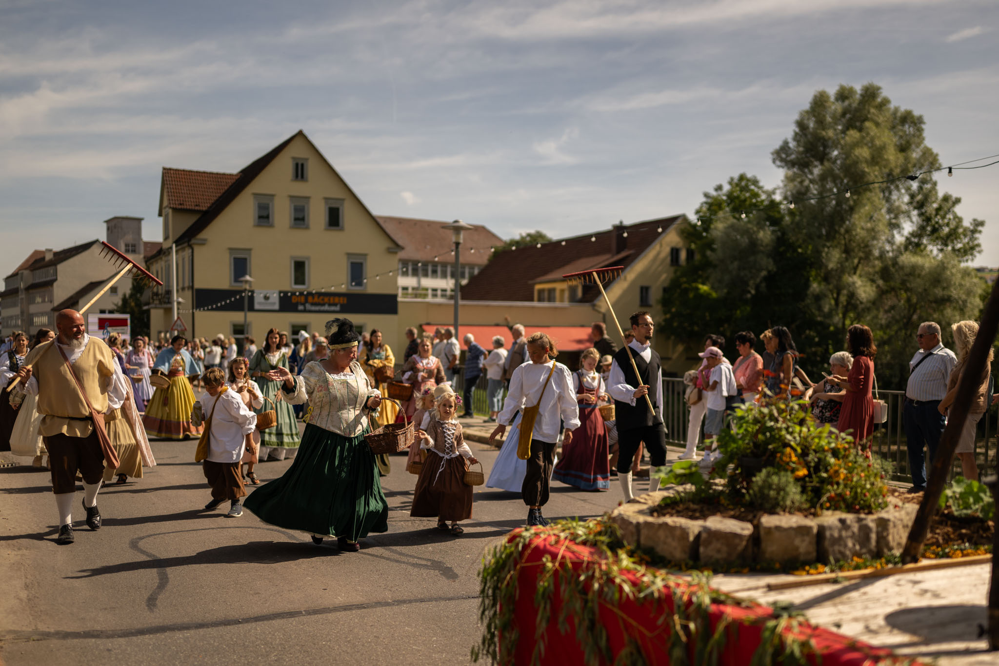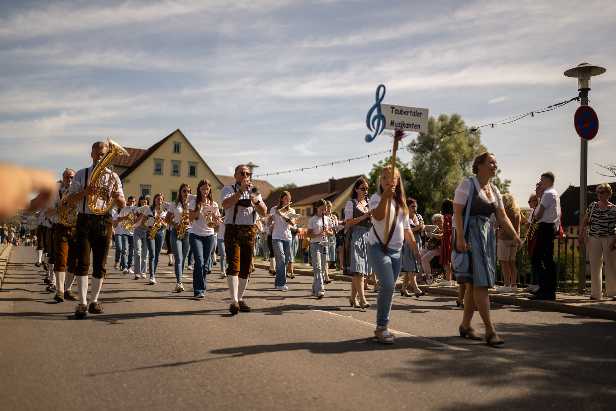 Unter dem Motto „500 Jahre Bauernkrieg“ standen dieses Jahr vor allem Szenen aus einer Epoche im Mittelpunkt, die die Region nachhaltig geprägt hat. Darsteller in historischen Kostümen erinnerten an die Ereignisse des 16. Jahrhunderts und machten die Vergangenheit greifbar. Neben diesen geschichtlichen Darstellungen brachten Musikkapellen, Trachtengruppen und Vereine fröhliche Töne und lebendige Bilder in die Straßen von Weikersheim.