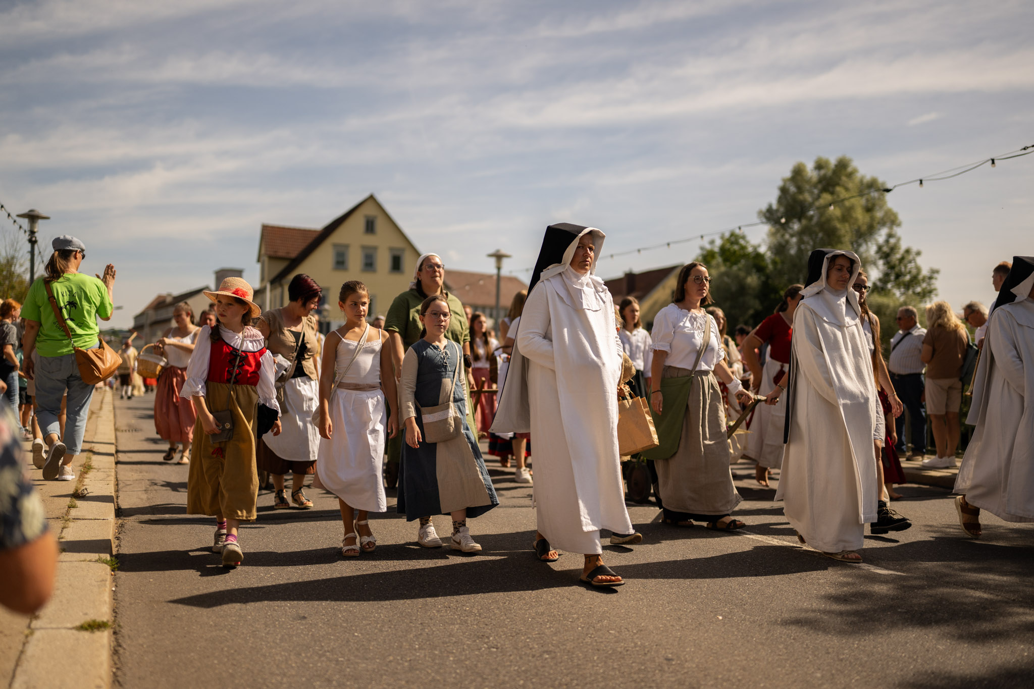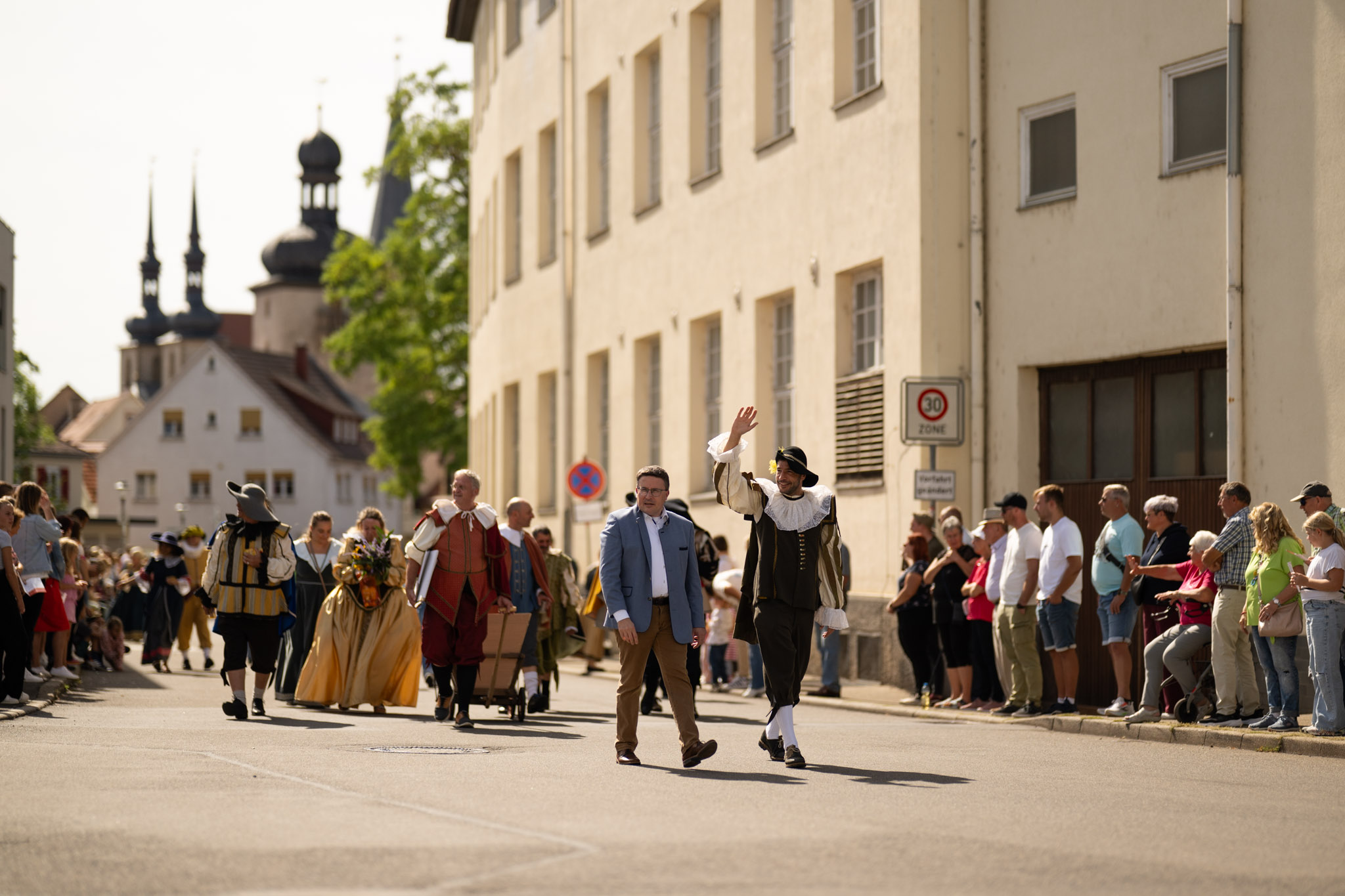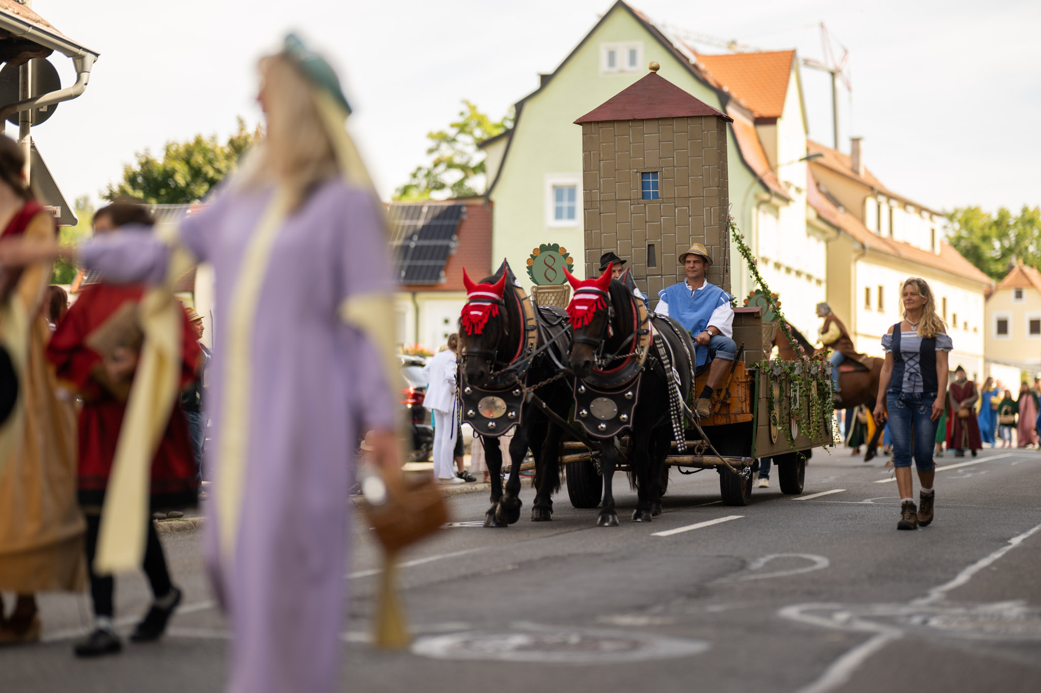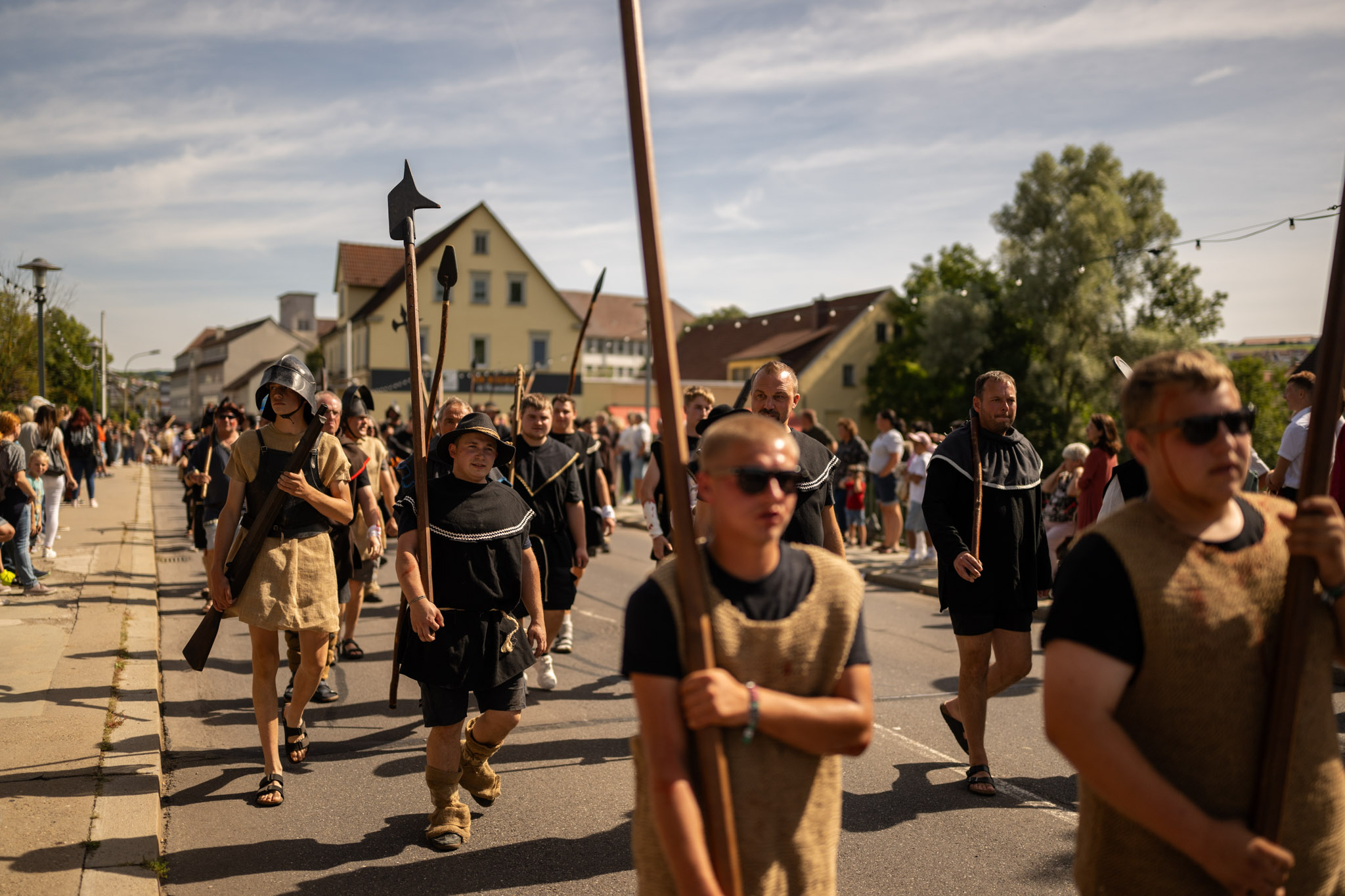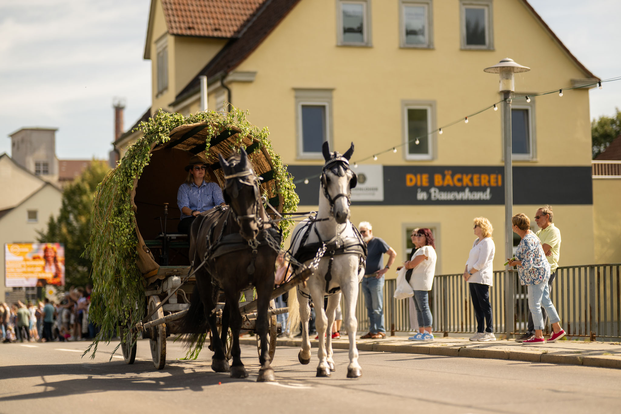 Unter dem Motto „500 Jahre Bauernkrieg“ standen dieses Jahr vor allem Szenen aus einer Epoche im Mittelpunkt, die die Region nachhaltig geprägt hat. Darsteller in historischen Kostümen erinnerten an die Ereignisse des 16. Jahrhunderts und machten die Vergangenheit greifbar. Neben diesen geschichtlichen Darstellungen brachten Musikkapellen, Trachtengruppen und Vereine fröhliche Töne und lebendige Bilder in die Straßen von Weikersheim.