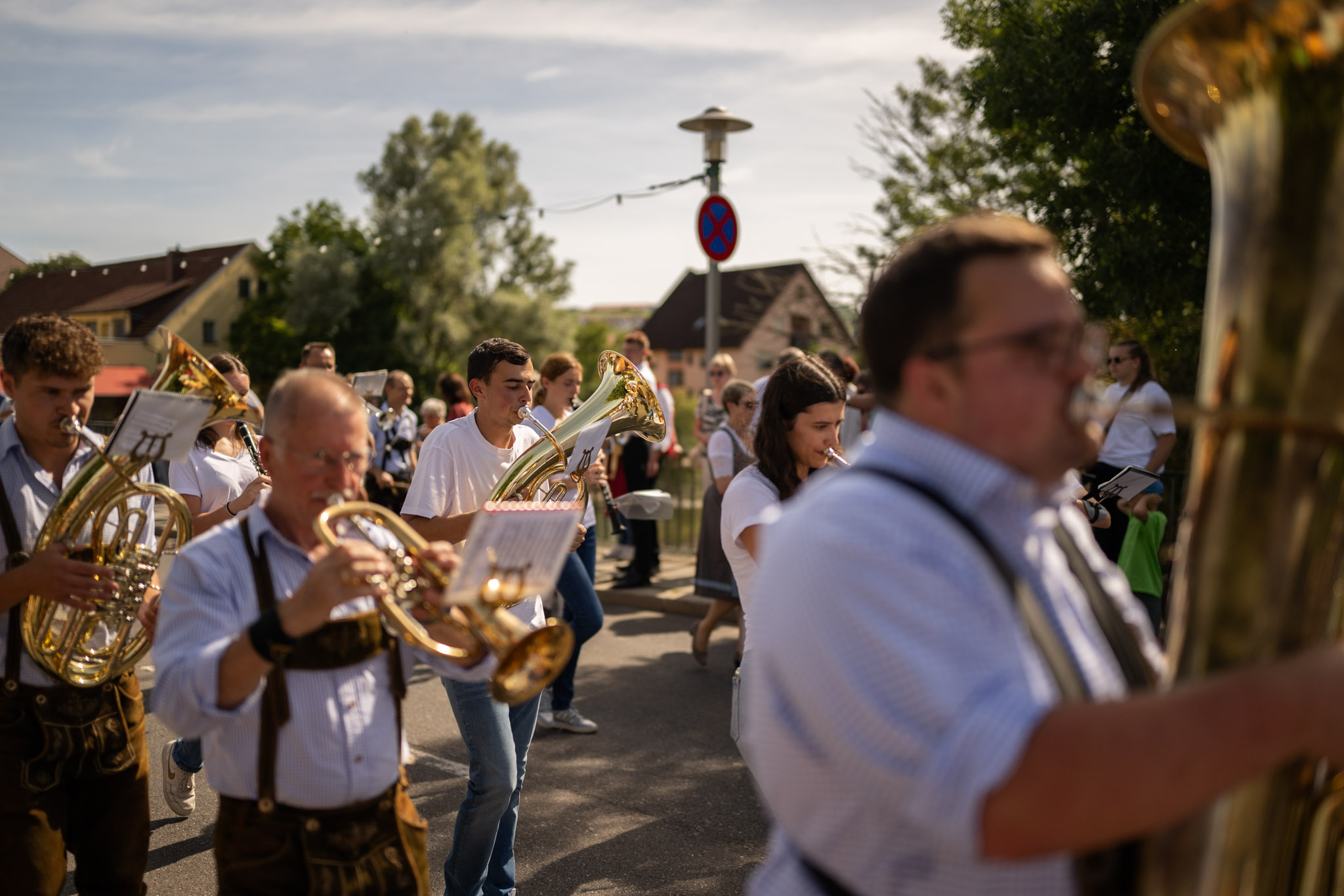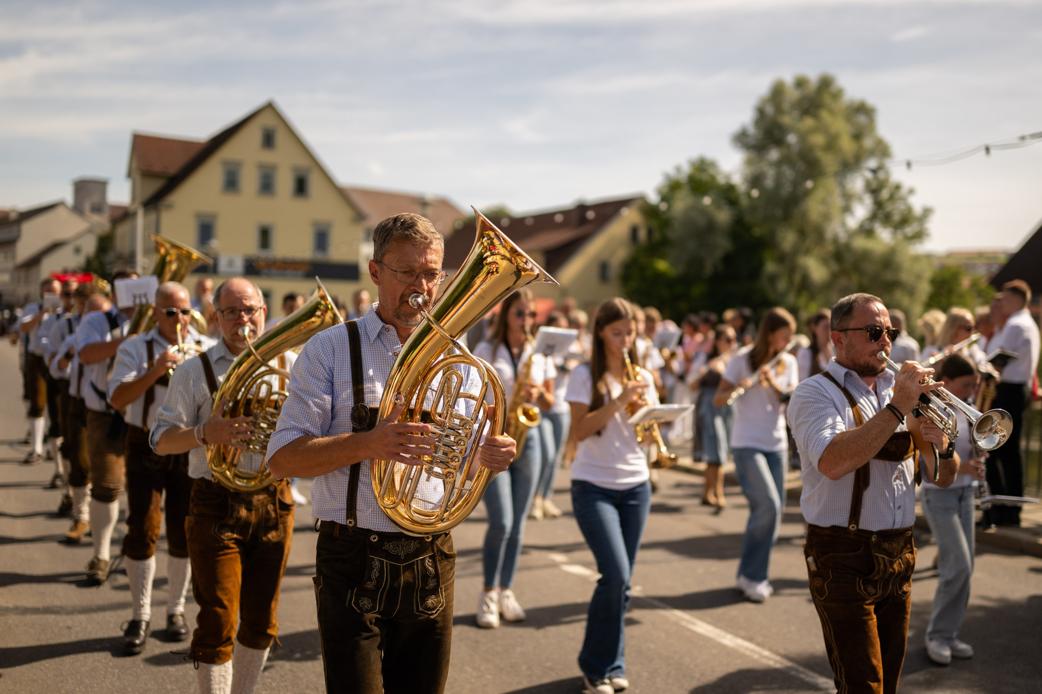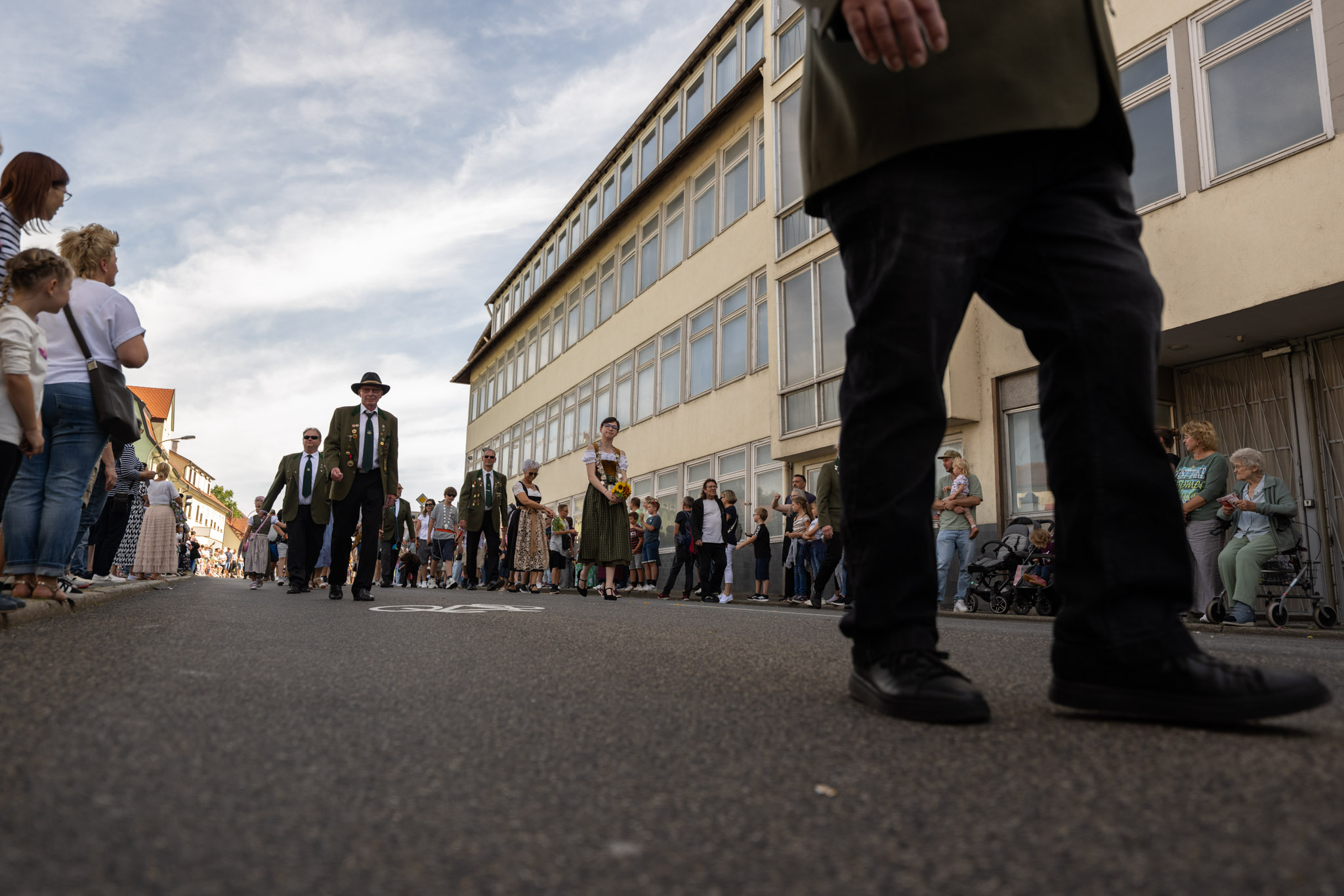 Ein besonderes Highlight des Tages war die Teilnahme von Bürgermeister Nick Schuppert, der nicht nur als offizieller Vertreter der Stadt zugegen war, sondern selbst aktiv am Umzug teilnahm. Seine persönliche Präsenz im Zug unterstrich die Bedeutung der Kärwe für Weikersheim und zeigte, dass das Fest nicht nur von den Vereinen und Gruppen getragen wird, sondern auch von der kommunalen Gemeinschaft und ihren Verantwortlichen.